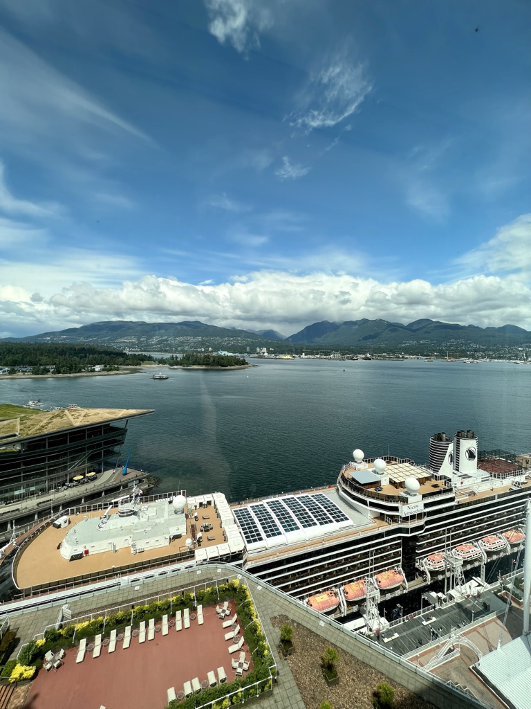 We reserved a harbor view room, which was a bit more expensive than the standard room type, but totally worth it. Later on, you’ll see that we got to watch the Wonder’s arrival into Vancouver, which was awesome. This hotel is also extremely convenient for cruise guests. You can take an elevator directly from the hotel lobby down to the cruise terminal and bell services will pick your luggage up in your room and it will arrive in your stateroom if you’ve tagged them with your cruise line luggage tags.