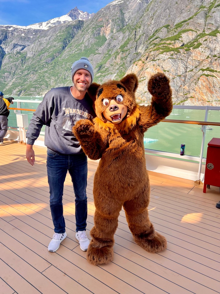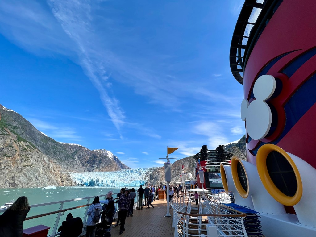 After the picture, I had to hustle back to the stateroom to gather my stuff because I was meeting in the Walt Disney Theater at 11:45 for the Glacier Explorer port adventure. We had originally signed the whole family up, but a few days before the cruise, we decided that the kids probably wouldn’t enjoy this type of excursion, especially not for the amount of money that we would pay for them to experience it. I think this turned out to be the right decision, but more on that later.