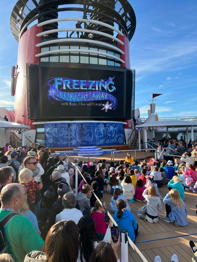 Later that night was the “Freezing the Night Away” deck party. Not my favorite deck party, but it had a fun storyline and they made it snow on deck, so really what more could you ask for?