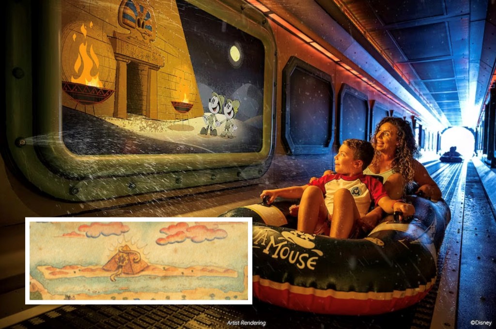 There was a lot of speculation about what the pyramid at the top of the map could represent. It was revealed that a new experience, inspired by the Mickey Mouse animated short, the “Temple of the Golden Egg”, would be added to Disney Cruise Line’s water attraction at sea. We also learned from Pam Rawlins, Walt Disney Imagineering Executive Producer, during a Q&A onboard the Wish, that the show would NOT be exclusive to the Treasure and will also be added to the rotation on the Wish.