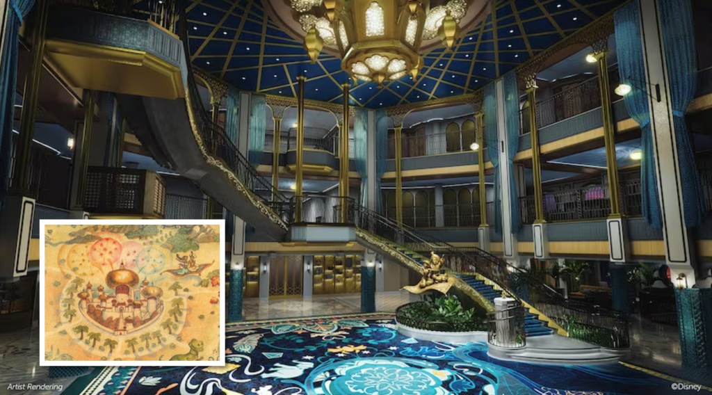 Nothing was mentioned about the “Cave of Wonders” during the livestream, but I am guessing it is a hint at some Aladdin-themed staterooms.
