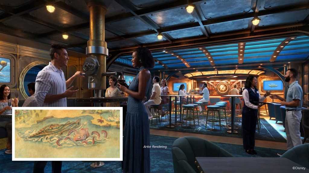 Sticking with the theme of parks attractions being brought onboard, the Periscope Pub is going to make you feel like you’ve stepped aboard the Nautilus from the classic attraction, 20,000 Leagues Under the Sea: Submarine Voyage. I think this is going to be a really cool space, with the glass overhead giving you a view out into the ocean (and maybe even an appearance by the giant squid?).