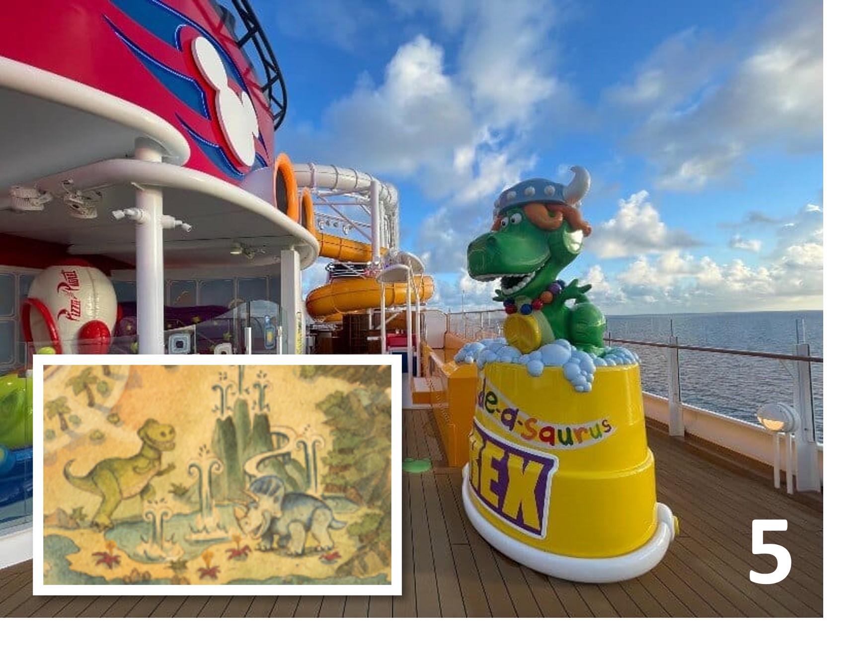 5. The Slide-a-Saurus Rex family slide, along with the Toy Story Splash Zone will return to the pool deck of the Disney Treasure